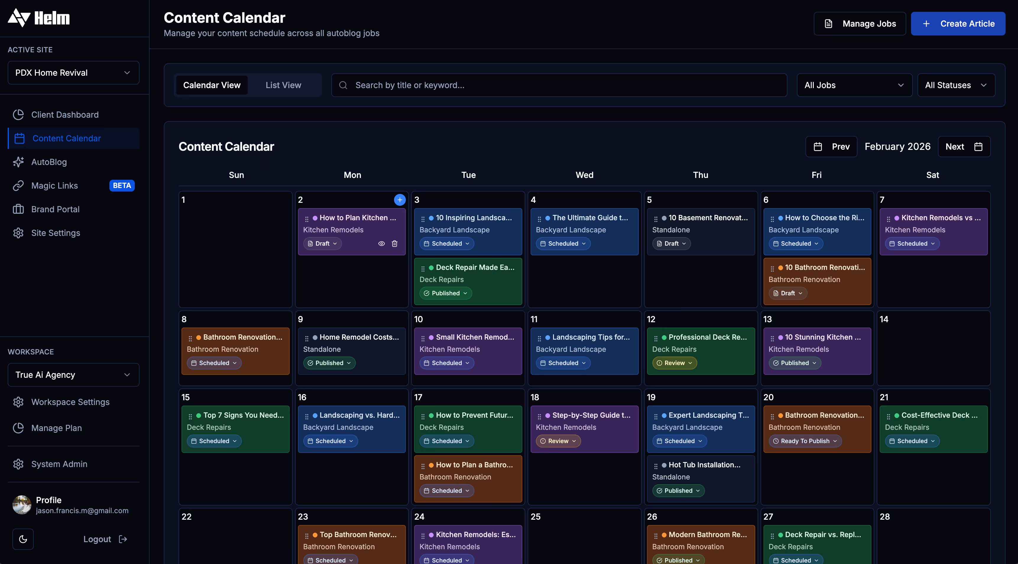 Stop treating all traffic as equal. Helm ties pageviews, keywords, and content performance to real outcomes like calls, form fills, and pipeline so you can see which articles, landing pages, and GBP posts are actually moving revenue. Instead of chasing vanity metrics, you get a ranked view of your true money pages.